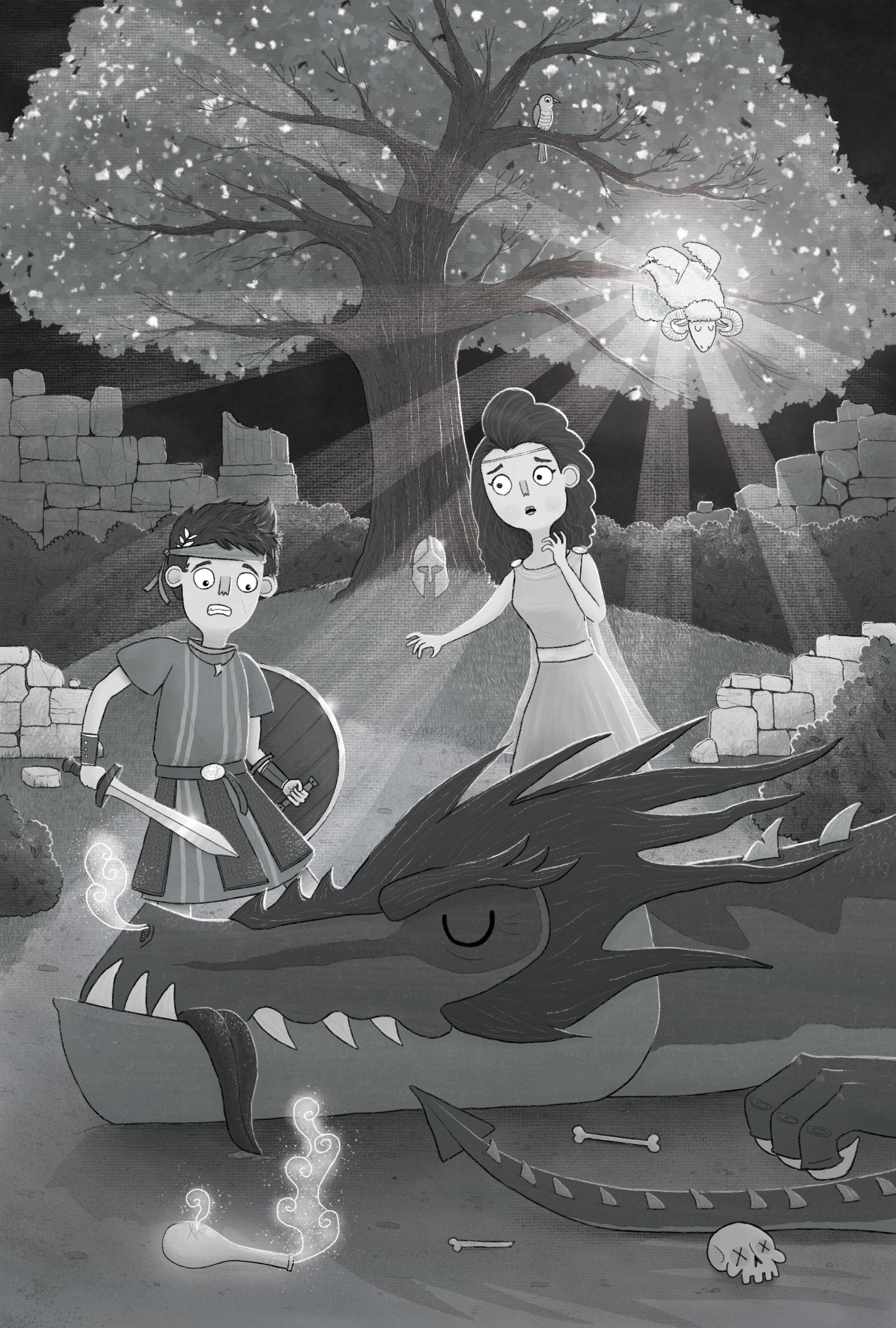 Book cover and interior illustrations created based on the famous Greek mythological story Argonautica, or Jason and the Golden Fleece. Personal work created for the Plum Awards 2021.